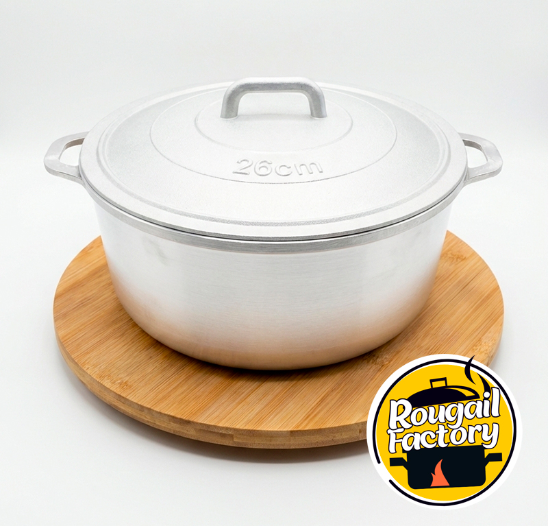 Véritable marmite créole en « fonte d’aluminium » d’une épaisseur de 5mm convient parfaitement à la cuisine traditionnelle de l’île de la Réunion.